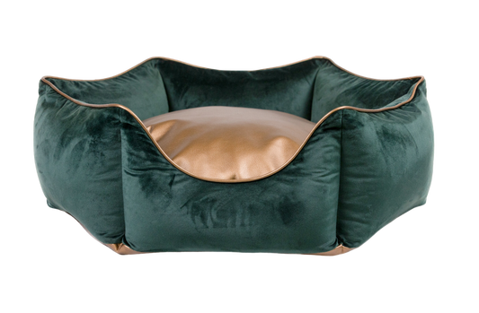 Unser Hundebett Krone wird in liebevoller Handarbeit in unserem Atelier kreiert. Ausgewählte Materialien, kombiniert mit exquisiten Designs, ergeben ein Hundebett der Extraklasse.