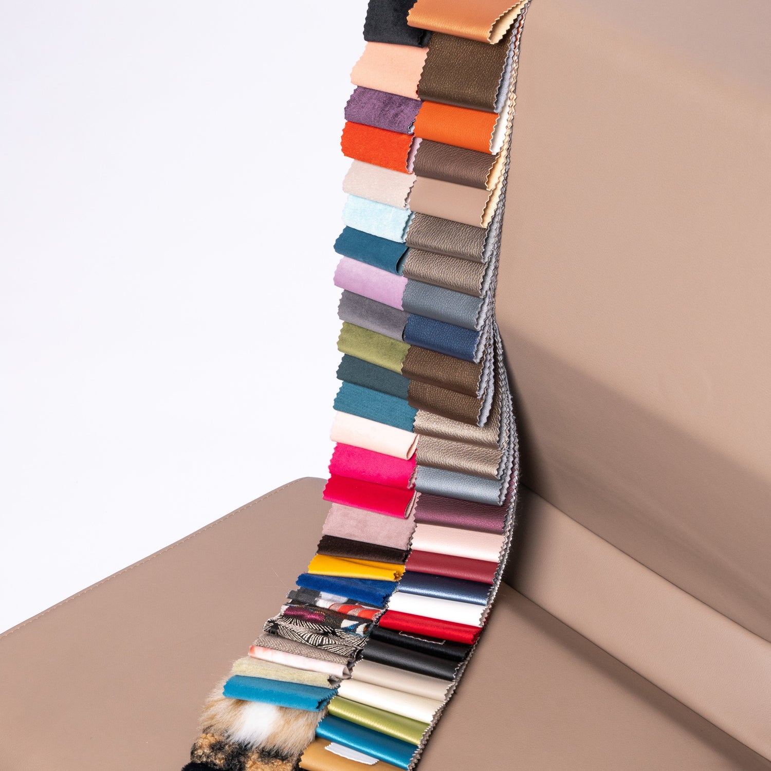 Bestelle dir bis zu drei kostenlose Musterstoffe zu dir nach Hause und entscheide enspannt welcher Stoff dir am besten gefällt.
